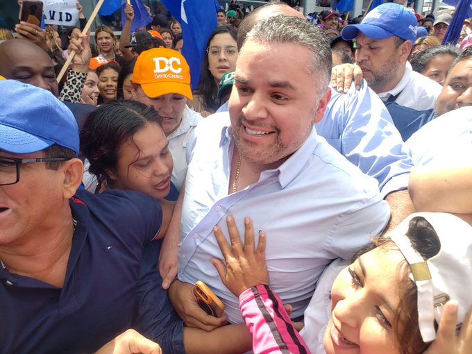Después de quince meses en el exilio acusado de varios delitos David Chávez retorno al país, fue recibido por una significativa cantidad de activistas del Partido Nacional quienes posteriormente lo acompañaron a la sede del Comite Central donde pronuncio un contundente mensaje en contra de quienes han traficado con influencias y dilapidado los recursos del partido.