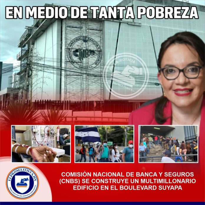 La Comisión Nacional de Bancos y Seguros ha dispuesto construir un nuevo edificio en el boulevard Suyapa de la capital, la imponente obra a simple vista tendría un costo multimillonario qal cual no hemos podido tener acceso desde esta sala de redaccion del proselitista hn, no hemos tampoco tenido acceso al proceso de licitación si se llevo cabo bajo en cumplimiento de la ley.