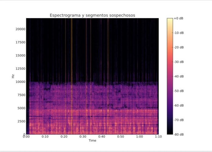 Dichas irregularidades no corresponden a los patrones fisiológicos de una fonación humana continua, si no a procesos de ensamblaje o reconstrucción digital de la señal de voz la uniformidad y periodicidad de estas alteraciones son consistentes con la acción de algoritmos de clonación o síntesis de voz basados en inteligencia artificial, los cuales replican el timbre original pero generan trazos acústicos artificialmente regulares,