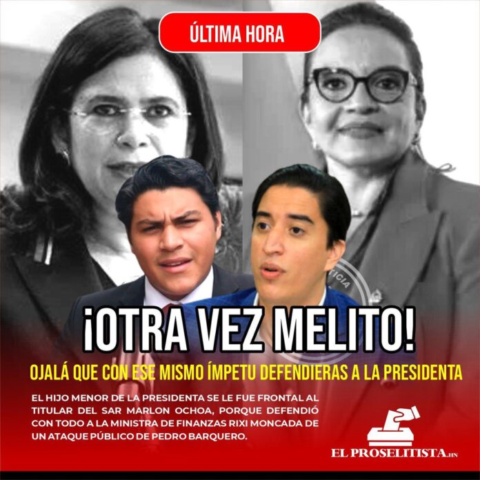 Las apariciones del hijo de menor de la Presidenta «Melito» Zelaya parace que se convertirá en el mecanismo para llamar al orden a los funcionarios de gobierno, en las ultimas horas el titular del SAR Marlon Ochoa se abrogo el derecho de salir al paso a través de sus redes sociales para defender visceralmente a la Ministra de Finanzas Rixi Moncada de un comentario que hizo Pedro Barquero en una entrevista. » Pedro, usted está al servicio de la Oligarquía. lo envileció su dinero. NO tiene altura para atacar una persona honesta como la Abogada Moncada, que donde ella pone los pies usted no puede poner ni la cara»