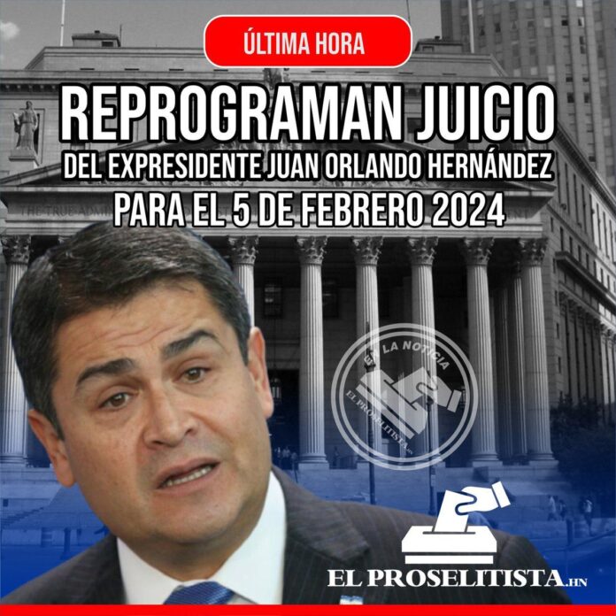 Un juez de Estados Unidos ha reprogramado este jueves para el 5 de febrero de 2024 el juicio con jurado por varios delitos de narcotráfico del expresidente de Honduras Juan Orlando Hernández (2014-2022), caso que ya se había visto pospuesto varios meses.