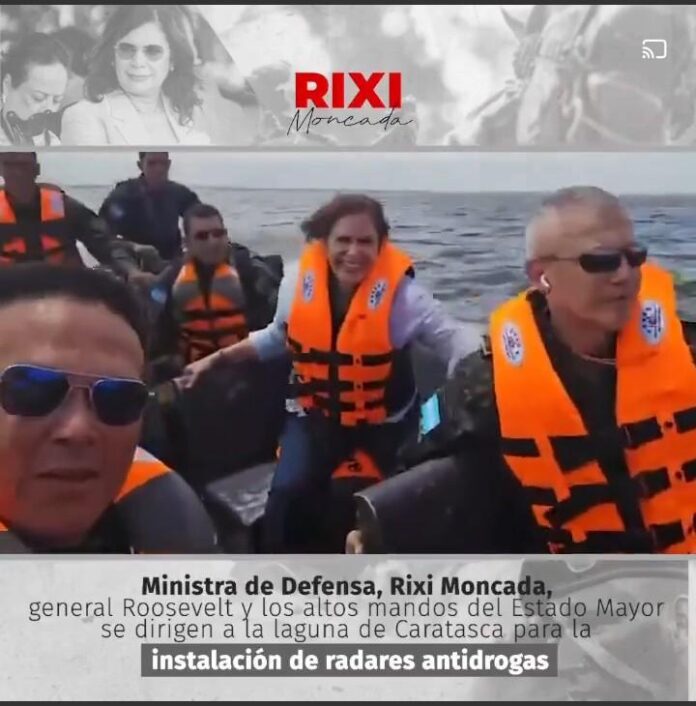 Una afrenta a la constitución de la Republica y utilizando su cargo como ministra de defensa Rixi Moncada, en plena campaña politica disfrazada de un acto oficial, publico en las ultimas horas un video acompañada del jefe de las Fuerzas Armadas general Roosevelt Leonel Hernandez y otros oficiales castrenses,anunciando que se dirigian a la Laguna de Caratasca en el Departamento de Gracias a Dios, para la instalación de radares antidrogas.