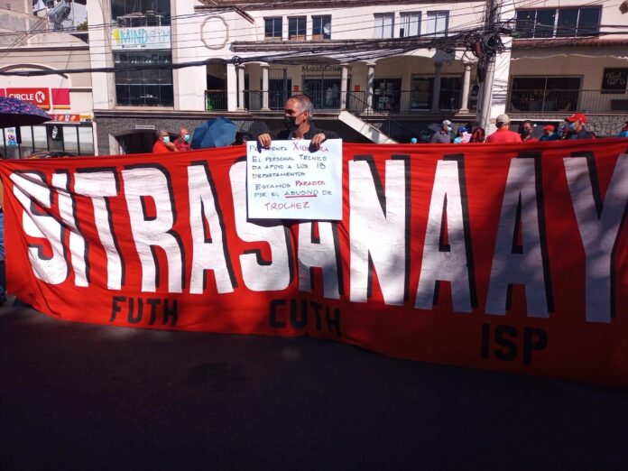 Julio César Pozas, presidente del Sitrasanaa, denunció que «la Policía Municipal, obedeciendo órdenes de Tróchez, agredió salvajamente a unos 15 compañeros de la UMAPS».